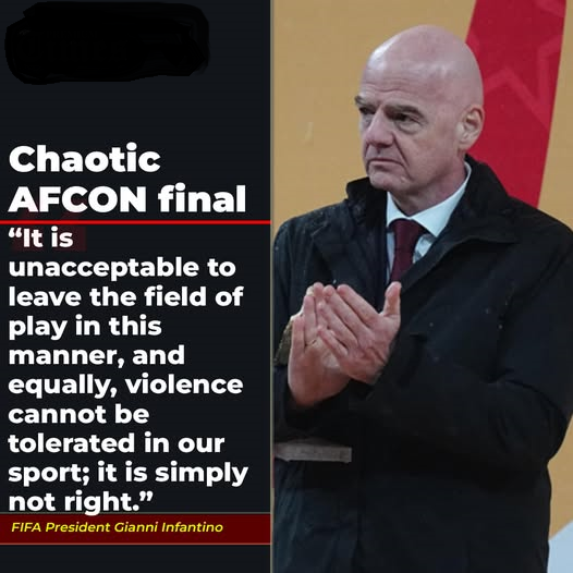 FIFA President Gianni Infantino has strongly condemned the chaotic scenes that overshadowed Senegal’s dramatic victory over Morocco in the final of the 2025 Africa Cup of Nations, describing the behaviour of some players, officials and supporters as completely unacceptable.